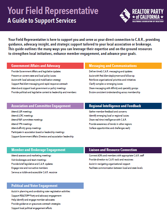 Invite a C.A.R. Government Affairs Field Rep to your office or association!
